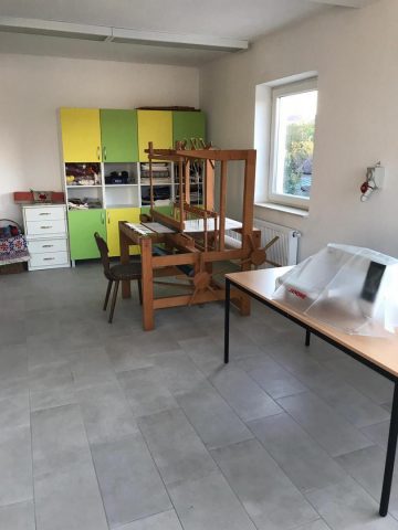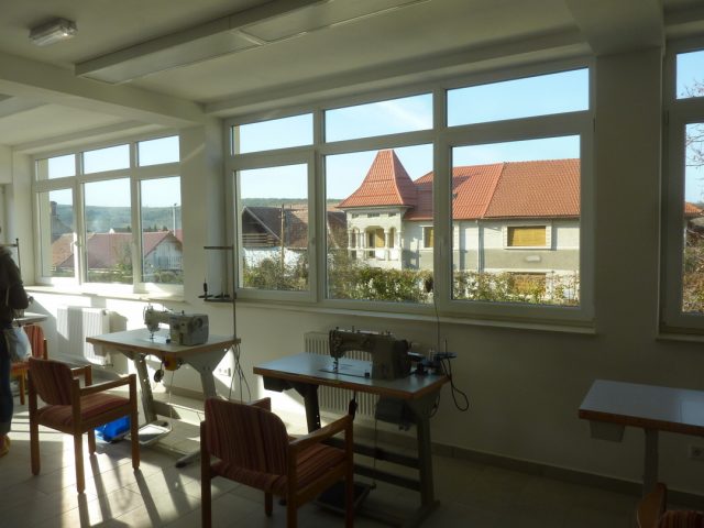 Im Bereich der Beschäftigung sind ein Holz- und ein Textilbereich entstanden. Für den Holzbereich konnten verschiedene Maschinen wie Dekupiersäge, Bohrmaschinen, Tischfräse und Kleinwerkzeuge sowie für den Textilbereich einige Industrienähmaschinen, Haushaltsnähmaschinen, Zuschneidetisch, Bügelstation etc. über Förderanträge angeschafft werden konnten.  Weiterhin sind Räume für die heilpädagogische Förderung entstanden. Hier können mit entsprechenden Förder-, Bastel- und Spielmaterialien tagesstrukturierenden Angebote wahrgenommen werden.Ebenfalls entstanden ist im Erdgeschoss ein Pflegebad.  Diese Notwendigkeit besteht deshalb, weil für viele Kinder und Jugendliche eine angemessene Hygiene und Pflege in ihrem familiären Umfeld aufgrund äußerst ärmlicher Lebensbedingungen nicht möglich ist.